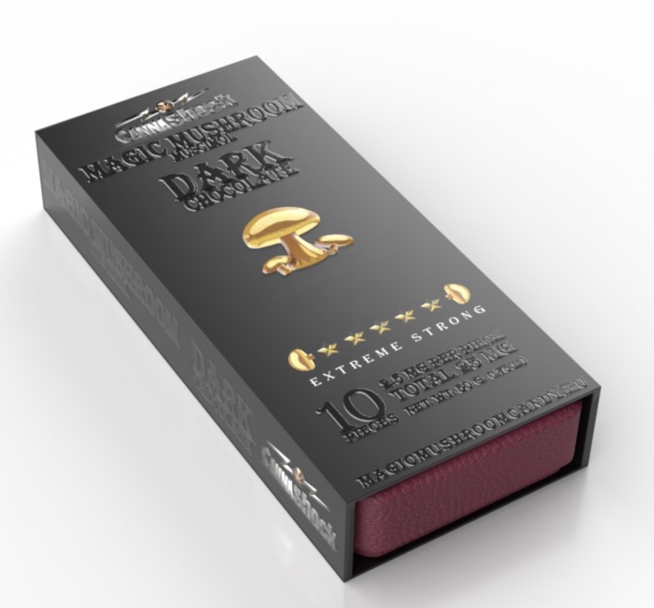 Each chocolate bar is pre-divided into 10 squares and infused with 25 mg Musimol. Our mushroom products are psychoactive but different from other mushrooms.